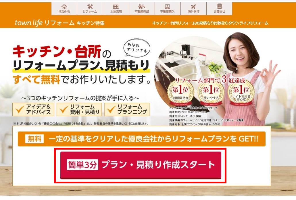 中でも「利用者安心度」がNo.1に選ばれていることから、安心してキッチンリフォームに向けての第一歩を進めていきます。