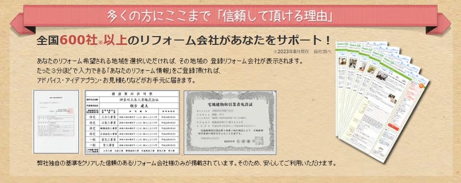 他のリフォーム見積もりサイトでは1000社以上の加盟店がいるので、少ない方になります。