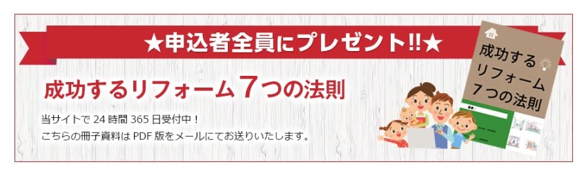 申し込みをした方全員に対して「成功するリフォーム7つの法則」という冊子がプレゼントされます。