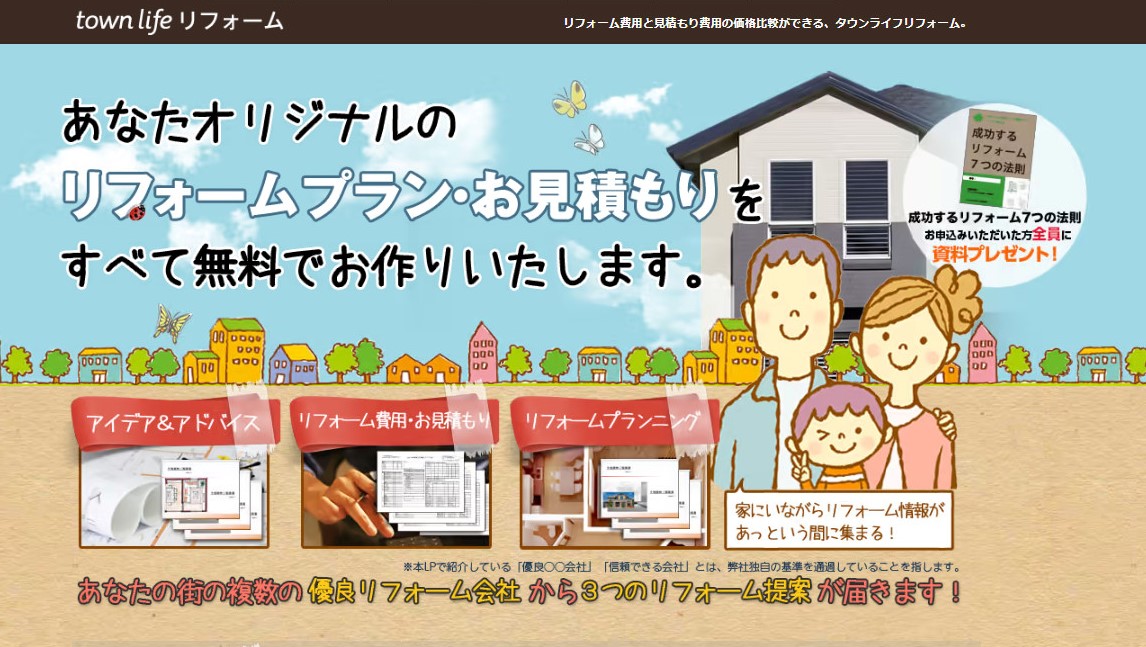 タウンライフリフォームはリフォームを考えている人が、複数のリフォーム業者に同時に見積もり依頼をすることができるサービスです。